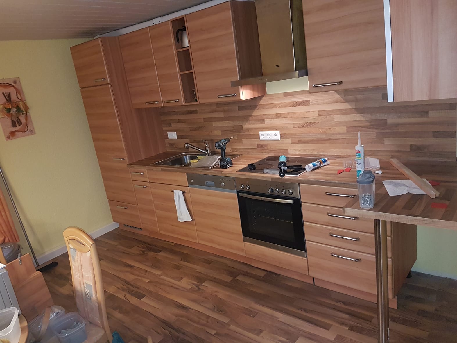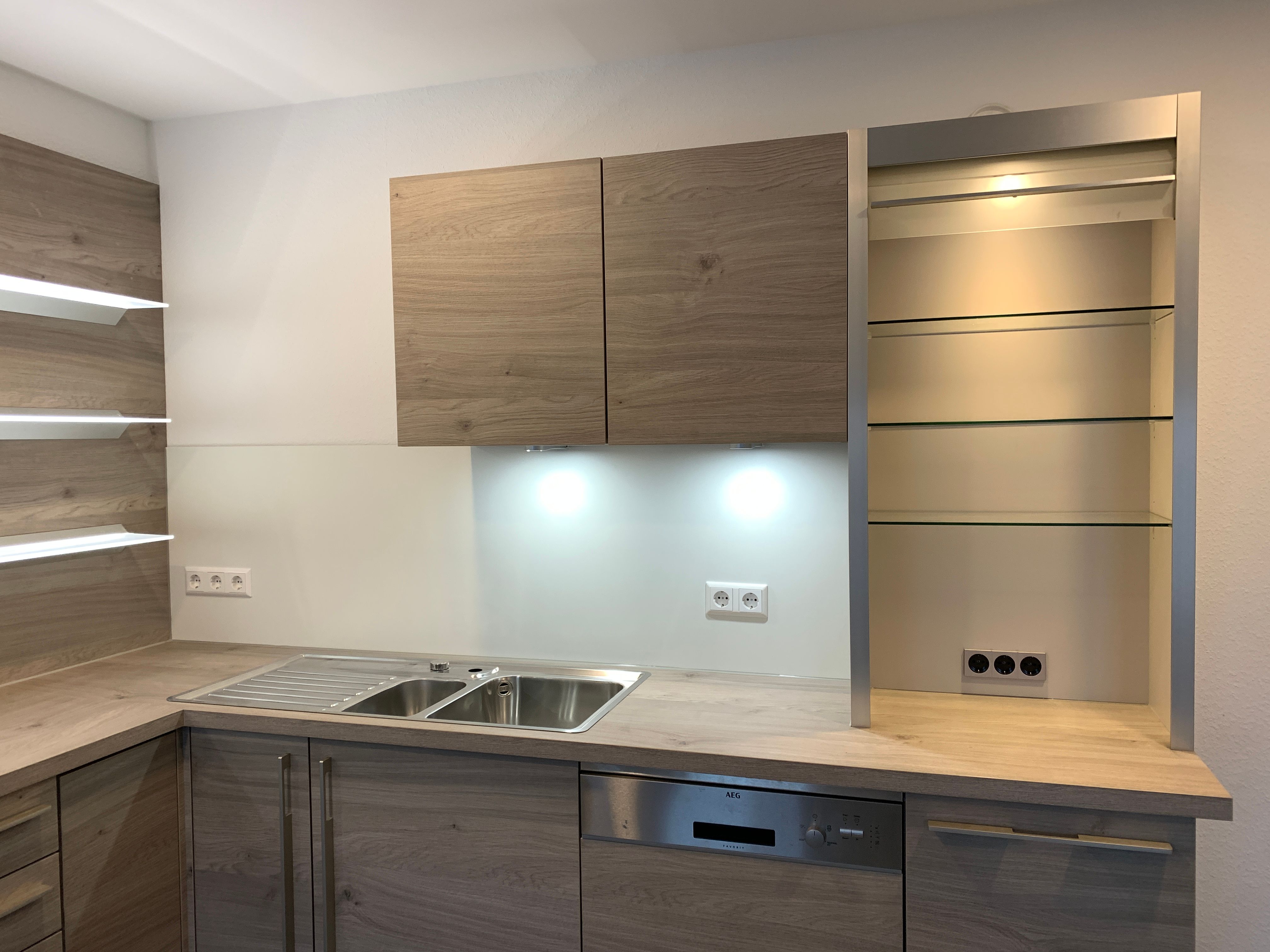 Fertigküche: L-Form; Montage; Arbeitsplatten, Waschbecken, Geschirr... Sehr zuverlässig, kompetent, vertrauensvoll und hilfsbereit! Er hat eine Ausstellungsküche komplett alleine, zu unsere vollsten Zufriedenheit, montiert. Zu einem fairen Preis! Gerne wieder!